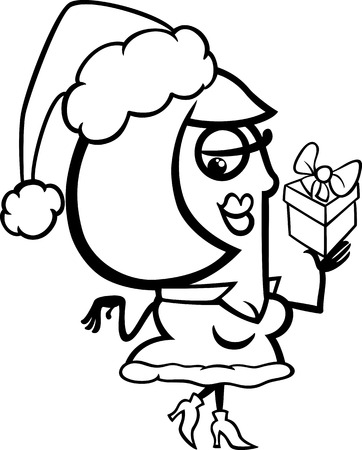 クリスマスと塗り絵のための雪のサンタ クロース文字の白黒漫画イラストのイラスト素材 ベクタ Image