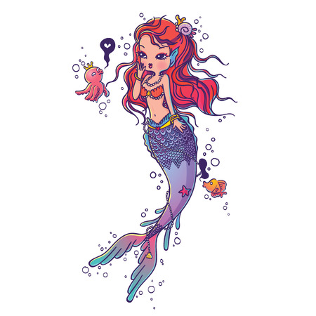 落書き漫画のキャラクター描画 海手の下でリトル マーメイドのベクトル イラストのイラスト素材 ベクタ Image