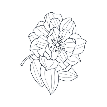 花と葉でジャスミンの植物 の枝のグラフィック黒と白のアウトライン イラスト手描き制作白い背景で隔離 アメリカ合衆国のベクターアート素材や画像を多数ご用意 Istock