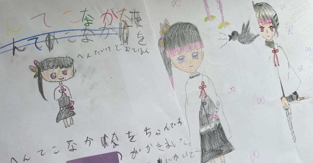 うちの三姉妹が鬼滅の刃カナヲちゃん 描いたんだけど 誰が1番うまいかnoteの人に教えてほしいだって りあこ Note