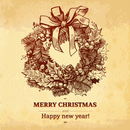 クリスマス光紙背景モノクロ ミッキーマウスファンタジアの新年冬に花輪を捧げるとビンテージ カード休日装飾的なイラスト カード センター ピース赤ラベル メリー クリスマスのイラスト素材 ベクタ Image
