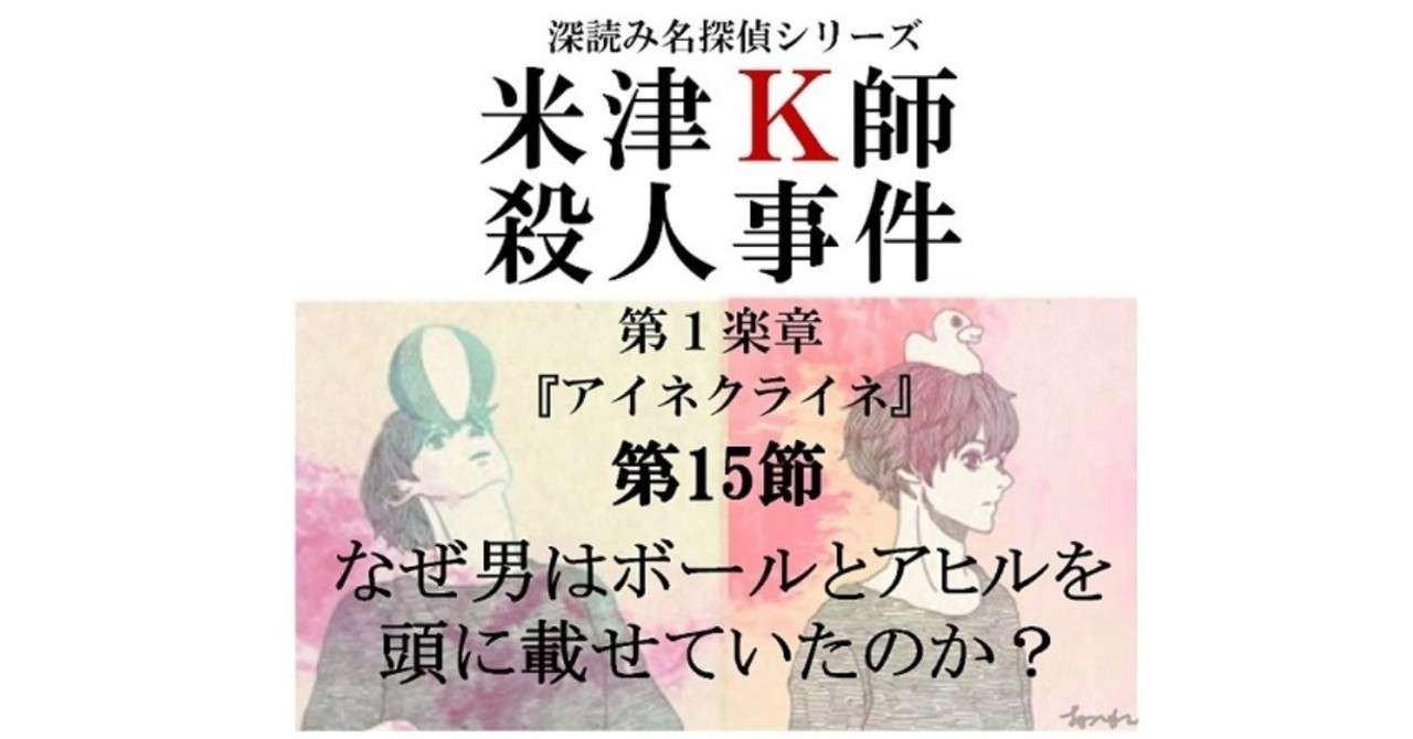米津k師殺人事件 第1楽章 アイネクライネ 第15節 なぜ男はボールとアヒルを頭に載せていたのか 深読み探偵 岡江 門 おかえもん Note